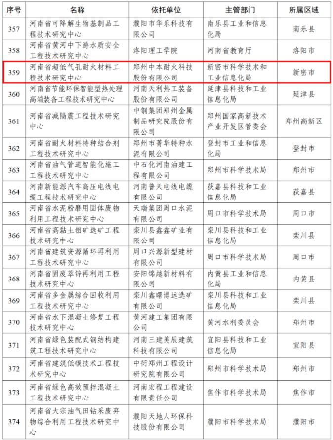 鄭州中本耐火科技股份有限公司成功入選“河南省超低氣孔耐火材料工程技術(shù)研究中心”