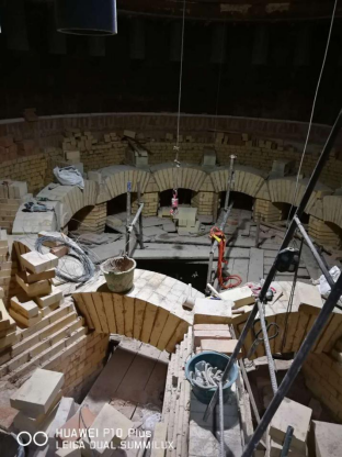 該窯型的產(chǎn)量高,對(duì)燃料的適應(yīng)性廣,這對(duì)耐火材料構(gòu)成了大的挑戰(zhàn),耐火襯料不僅要承受因高料位帶來(lái)的磨損機(jī)械應(yīng)力,還 要承受較高的熱和化學(xué)應(yīng)力負(fù)荷。由于該型豎窯正壓操作,密實(shí)的小濕砌磚縫和膨脹縫設(shè)計(jì)是重要的。當(dāng)(爐內(nèi))溫度變化時(shí),支柱部分厚重的耐火材料部件要承受很大的熱機(jī)械應(yīng) 力。